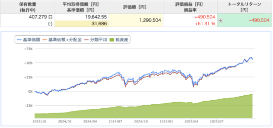 2023年10月に80万円投資して後は何もしていないけど、今では約49万円の含み益を出してくれているんだ。